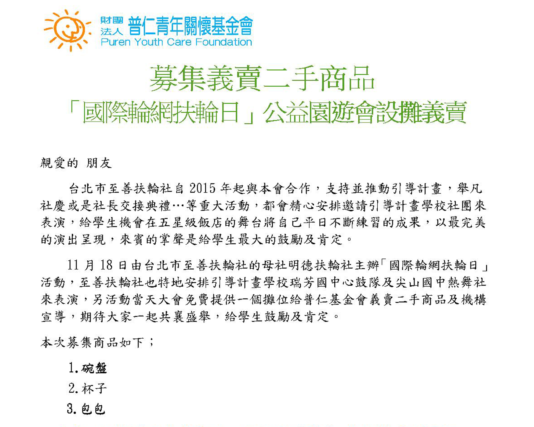 募集義賣二手商品 歡迎大家共襄盛舉