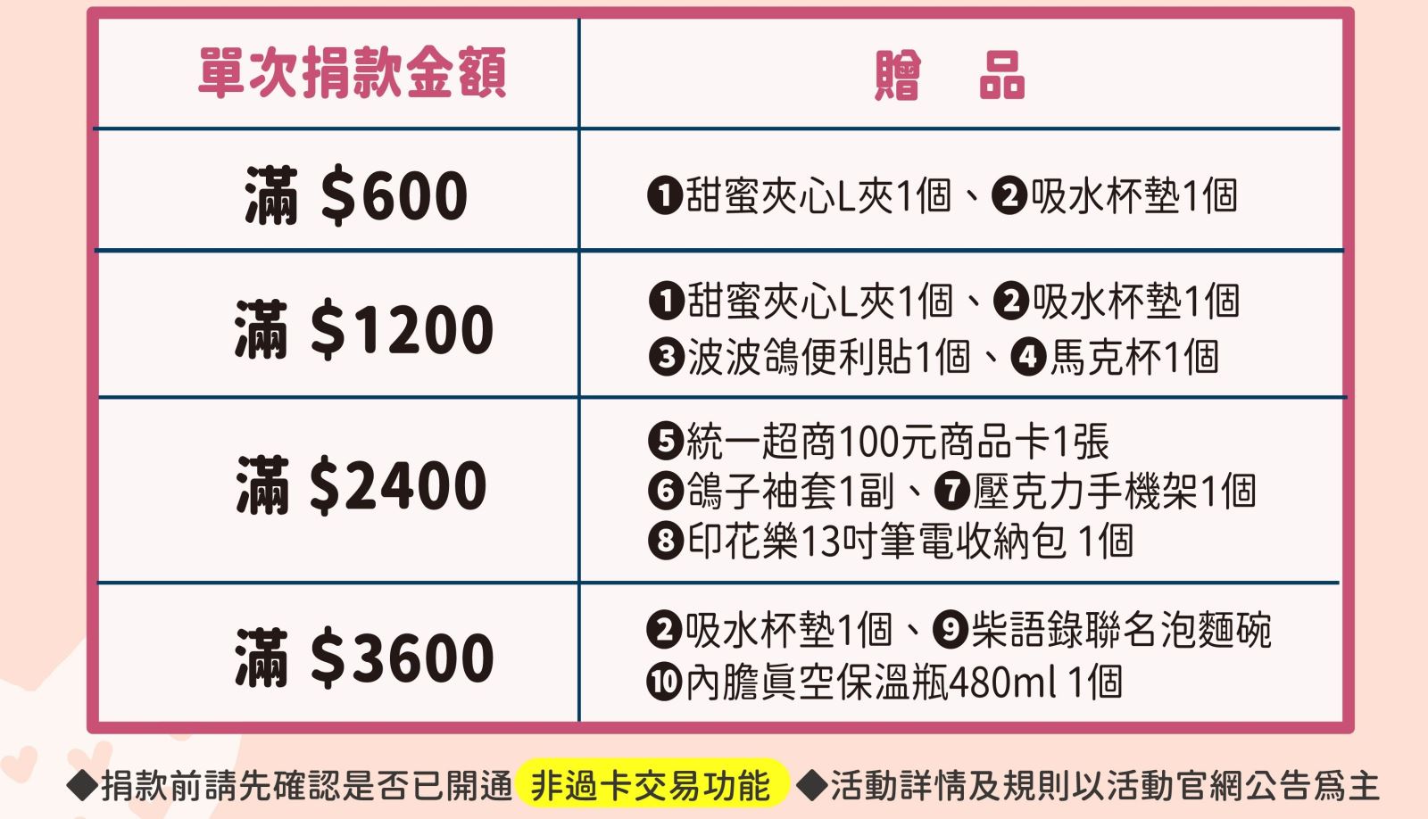 ⚠️請注意⚠️「捐款回饋禮」*僅限*使用「中華郵政VISA金融卡」捐款者可獲得
